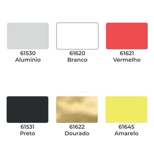 Disponível em seis cores: Alumínio, Branco, Vermelho, Preto, Dourado e Amarelo.