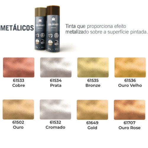 - Ouro, Cromado, Cobre, Prata, Bronze, Ouro Velho, Gold E Ouro Rose.